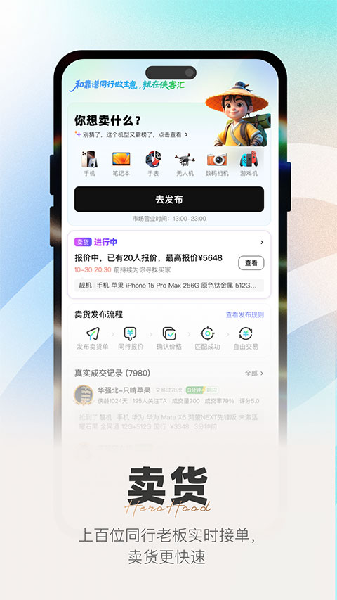 侠客汇app是一个二手交易市场,但是它主要服务的是B端客户,主打商家之间的货源对接与生意往来。平台入驻商家均经过实名核验,货源覆盖数码、服饰、家居等多个品类,依靠智能匹配快速撮合交易。内置专业验机、报价管理、订单追踪等实用功能,搭配即时沟通与行业资讯推送,让商家拿货、出货更省心,交易也更有保障。