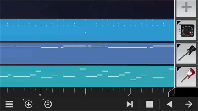2.点击左侧加号添加乐器,进入演奏界面按红色按钮开始录制,完成后点方形按钮结束。