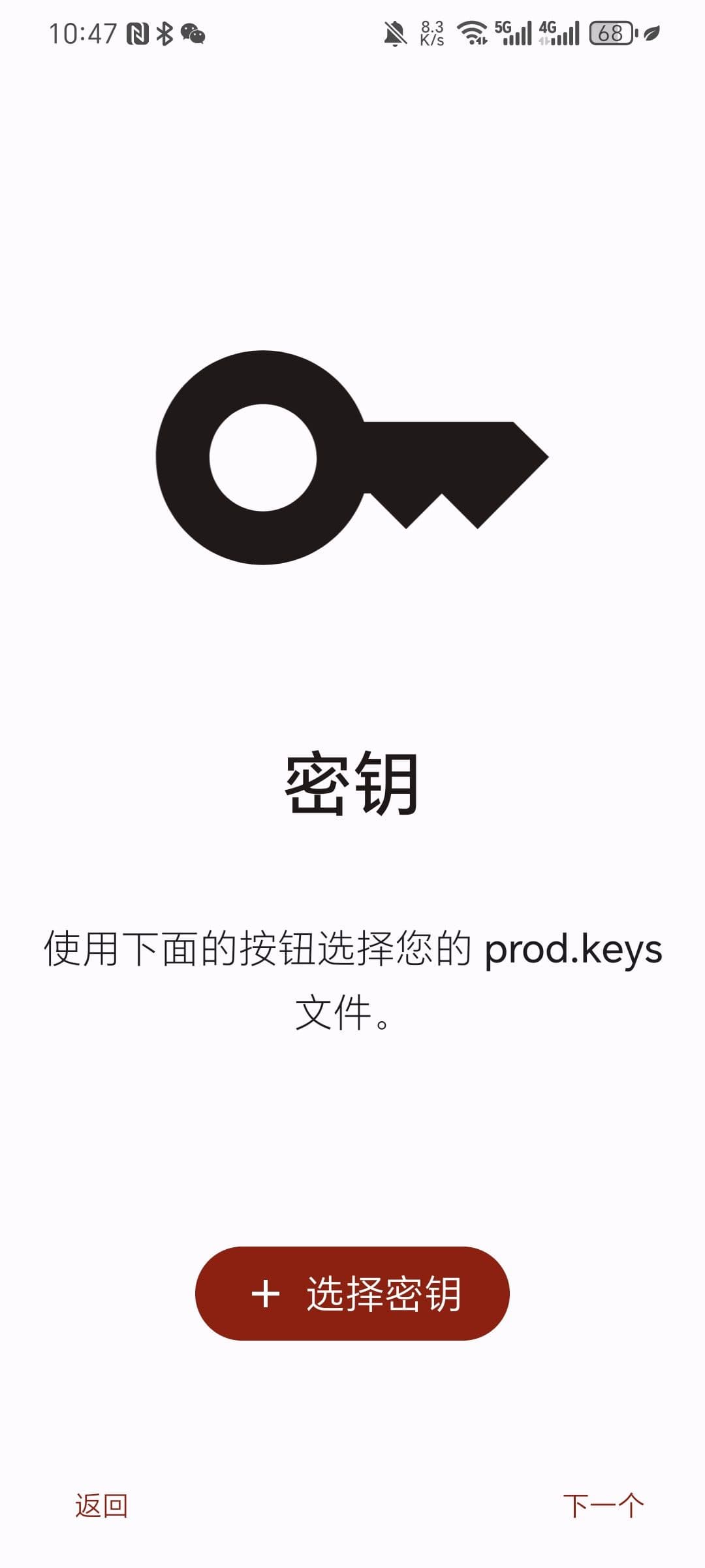 1.打开模拟器,进入主界面后点击密钥选项,选择本地已下载的prod.keys文件完成导入。