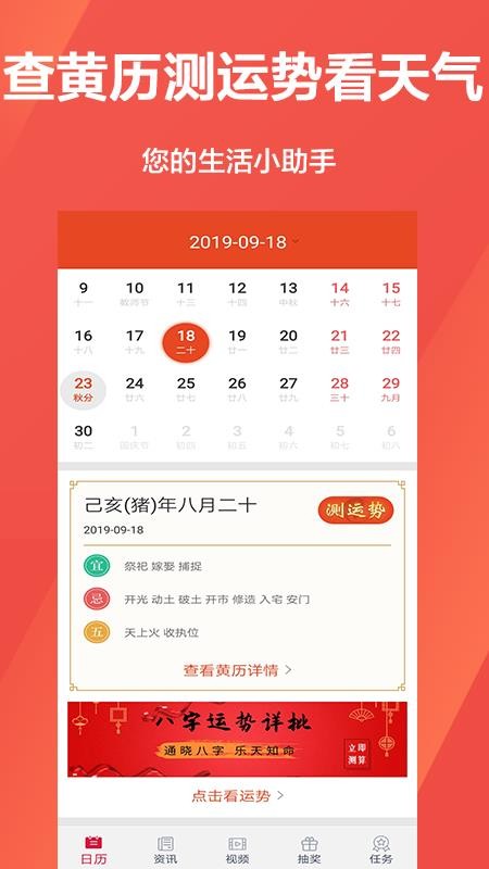 有财万年历app将会给用户们提供准确的日历查询功能。它包含的日历信息比较全面,不仅仅有我们日常使用的公历、农历日期,还有一些比较传统的黄历和万年历信息。当然,你也可以从中获取到一些天干地支纪年方式的信息展示。这对于我们了解古代文化很有帮助。当然,这个工具还会附带一些其他趣味小功能,比如一些简单的抽奖玩法,以及趣味测试小游戏等等。