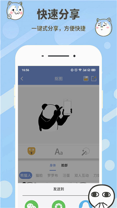 3.云端收藏表情包多设备同步,更换手机登录账号,收藏的自制与热门表情都不会丢失,一键调取使用。