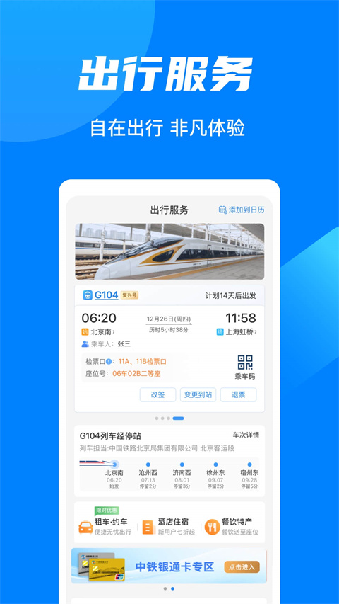 铁路官方购票客户端,出行票务办理全在手机端完成。