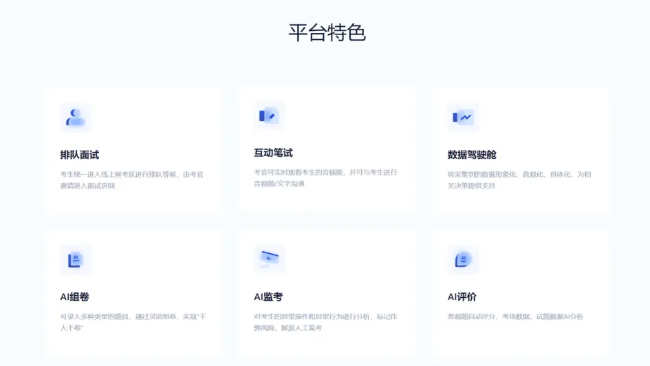 兼顾考试面试双用途的智能监考工具,移动端可用且支持大批量用户同时在线使用。