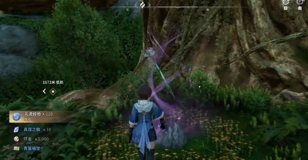 碎片合成完毕之后就需要来到翠萝野,抵达目的地之后往前面看就可以看到一个很显眼的大树,在大树的下面就有一个山洞。入到山洞时就需要一把神秘的钥匙,钥匙就在地图的踏板玄门处。建议所有的人不要过于着急去拿钥匙,把剩余的碎片先收集完毕。接着打开地图自定义筛选一下,然后选择探秘点。可以先通过导航的方式抵达目的地,然后完成交互,收集第一个额外的碎片。交互结束之后继续导航到探秘点往前走就能够找到,然后收集第二个碎片。