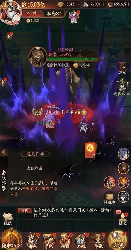 1、游戏中每个角色都有炫酷的技能特效,玩家可自由选择技能属性进行培养与升级。