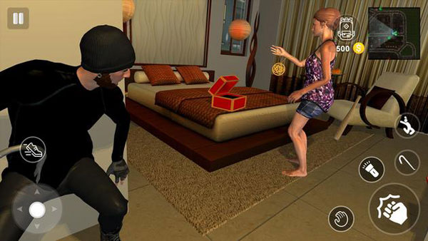 潜行模拟器(Thief Simulator: Heist Robbery)游戏会让你体验真正的紧张和心跳加速的感觉,你要悄悄摸进各类场景,避开巡逻和监控,看准时机拿走值钱物件,再转手换成现金升级开锁器、干扰器这类道具。路线全靠自己规划,慢一步或动静大一点都可能暴露。3D 场景还原度很高,环境音效到位,每一次行动都紧张又刺激。