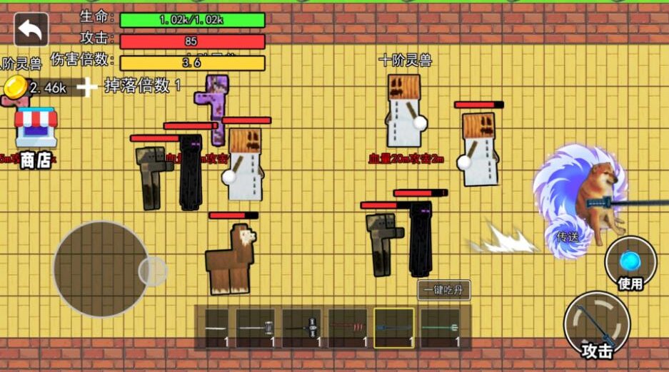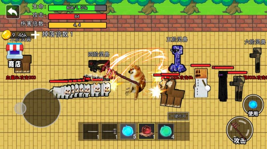 4、当把灵兽消灭以后,会掉落一阶丹药,每次可以提升5点血量,以及1点的攻击。