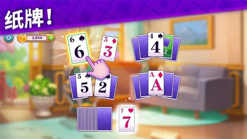 2、体验剧情后,进入核心玩法模式,在屏幕下方点击比卡牌多一或少一的卡牌完成消除。