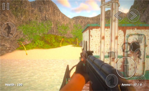 3、正式开始后左边控制角色的移动,右边是射击、跳跃、蹲下、换弹、近战、互动按键。