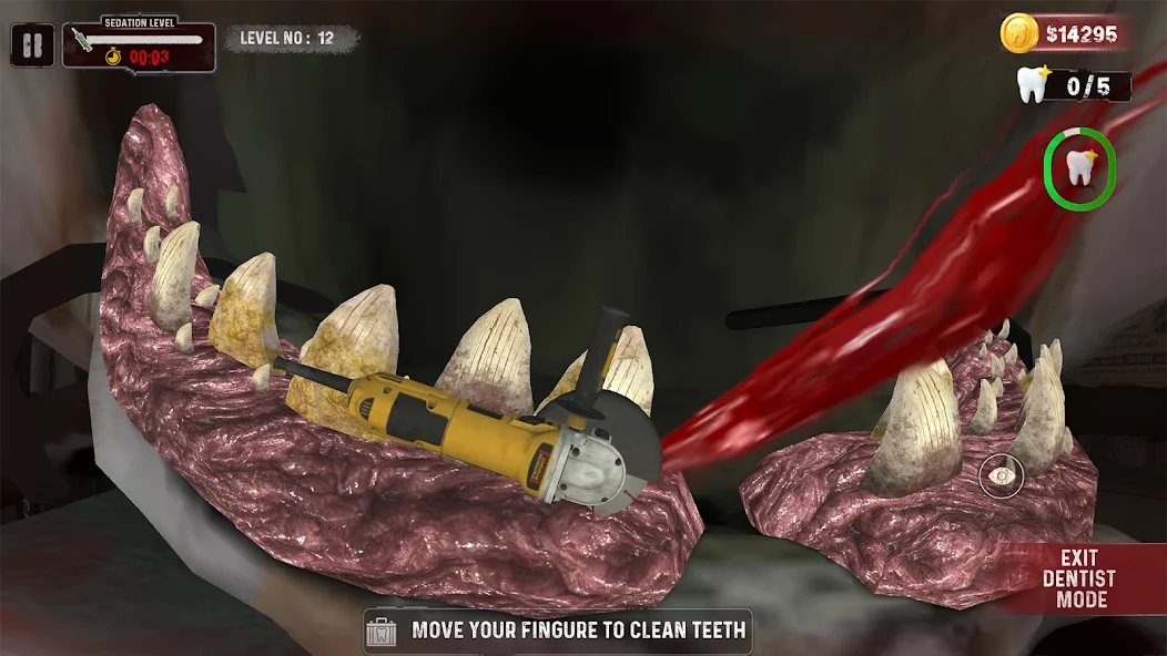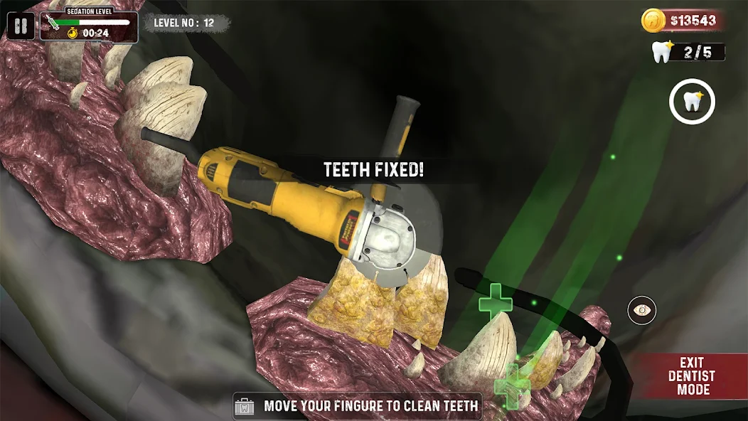 2.完成高难度关卡挑战,获取金币与诊疗勋章,用于解锁电锯、声波洁牙机等高级工具。