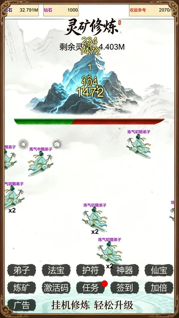 3.上阵8名弟子形成完整阵容,搭配聚灵阵灵宝,全体挖矿速度提升40%,离线收益同步增加。