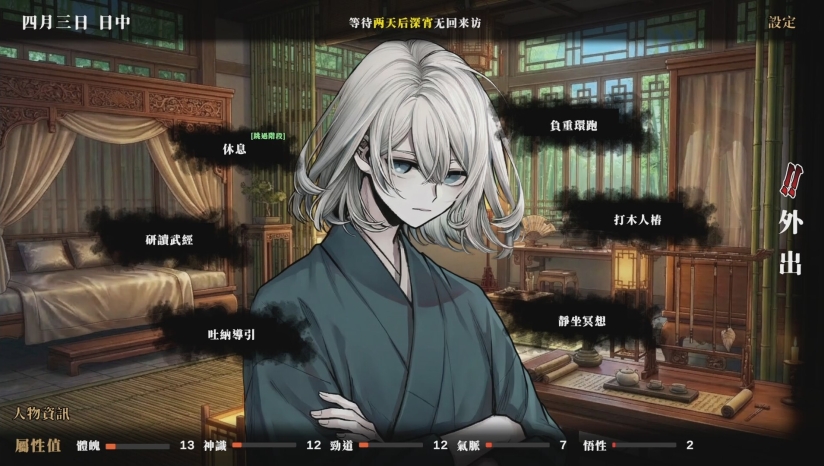 3、日常阶段可通过自由训练系统提升体魄、神识、劲道、气脉与悟性等五大属性,这些数值会直接影响战斗能力。