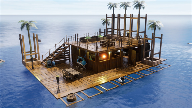 5、以收集的物资制作基础工作台,逐步解锁高级工具与建材,将破败木筏逐步改造成坚不可摧的海上堡垒。
