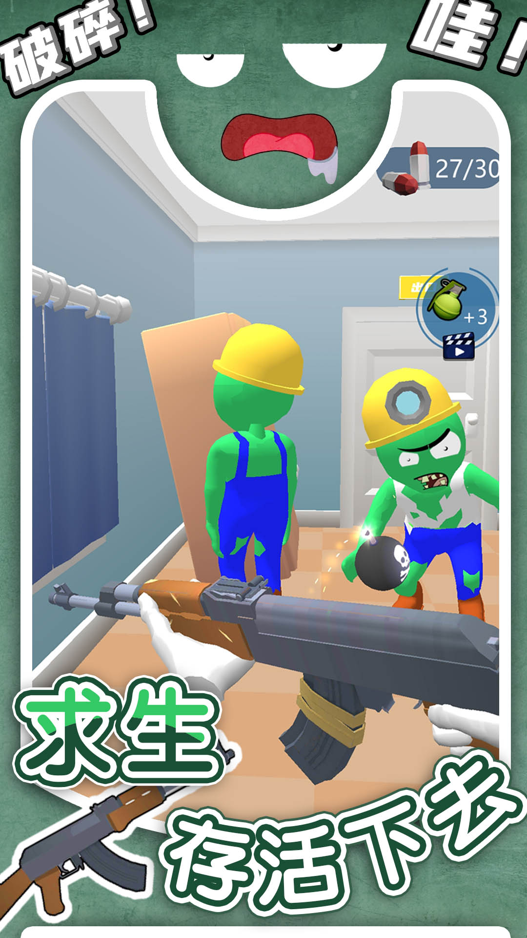 2.远程作战用步枪加手雷,步枪稳定输出压制敌人,手雷可清理集群火柴人敌人。